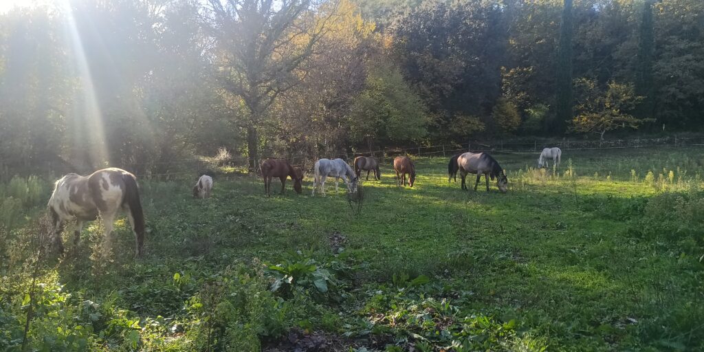 Another way to experience the Horsemanship I promote, is to actually stay on our Ranch for a few days. Our Ranch is nestled in the heart of the Provence. I love to call it “Wild France”. Here at our Ranch you will not only experience our hospitality but you’re also able to meet our Mustangs and feel the true wild spirit of those magnificent creatures. Each of those Mustangs has a different story. Curious…?